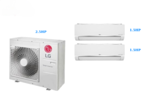 Combo Multi LG 1 Dàn Nóng 2.5HP + 2 Dàn Lạnh 1.5HP/1.5HP là hệ thống điều hòa Multi sử dụng một dàn nóng công suất 2.5HP kết nối với hai dàn lạnh treo tường cùng công suất 1.5HP. Nhờ đó, hệ thống đảm bảo hiệu quả làm mát ổn định cho hai phòng có diện tích trung bình.