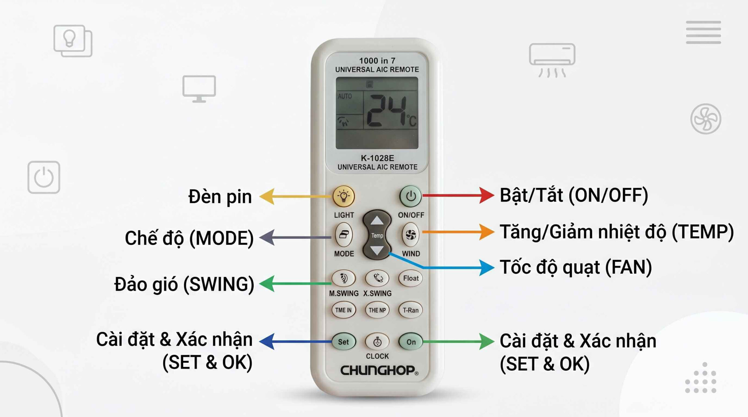 Remote máy lạnh của bạn đột ngột bị hỏng hoặc thất lạc? Remote đa năng Chunghop K-1028E chính là vị cứu tinh hoàn hảo. Tuy nhiên, với khả năng điều khiển lên đến 1000 mã tần số khác nhau, nhiều người dùng mới thường gặp khó khăn trong việc thiết lập thiết bị này.