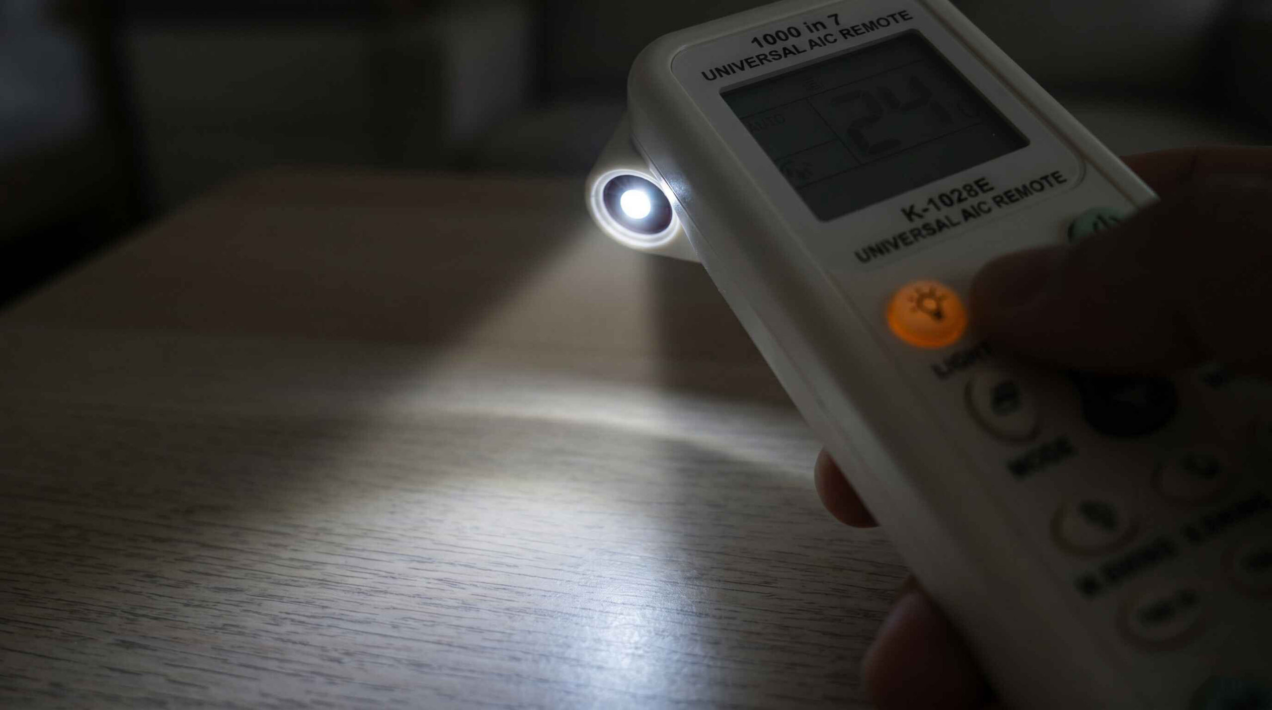Chức năng đèn pin chiếu sáng: Vào ban đêm, nếu bạn cần một nguồn sáng nhỏ, hãy nhấn nút LIGHT. Đèn LED siêu sáng ở đầu remote sẽ bật lên, rất tiện dụng khi mất điện đột ngột.