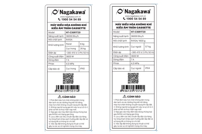 Thông số kỹ thuật Máy lạnh âm trần Nagakawa NT-C36R1T20 Mono 4.0HP