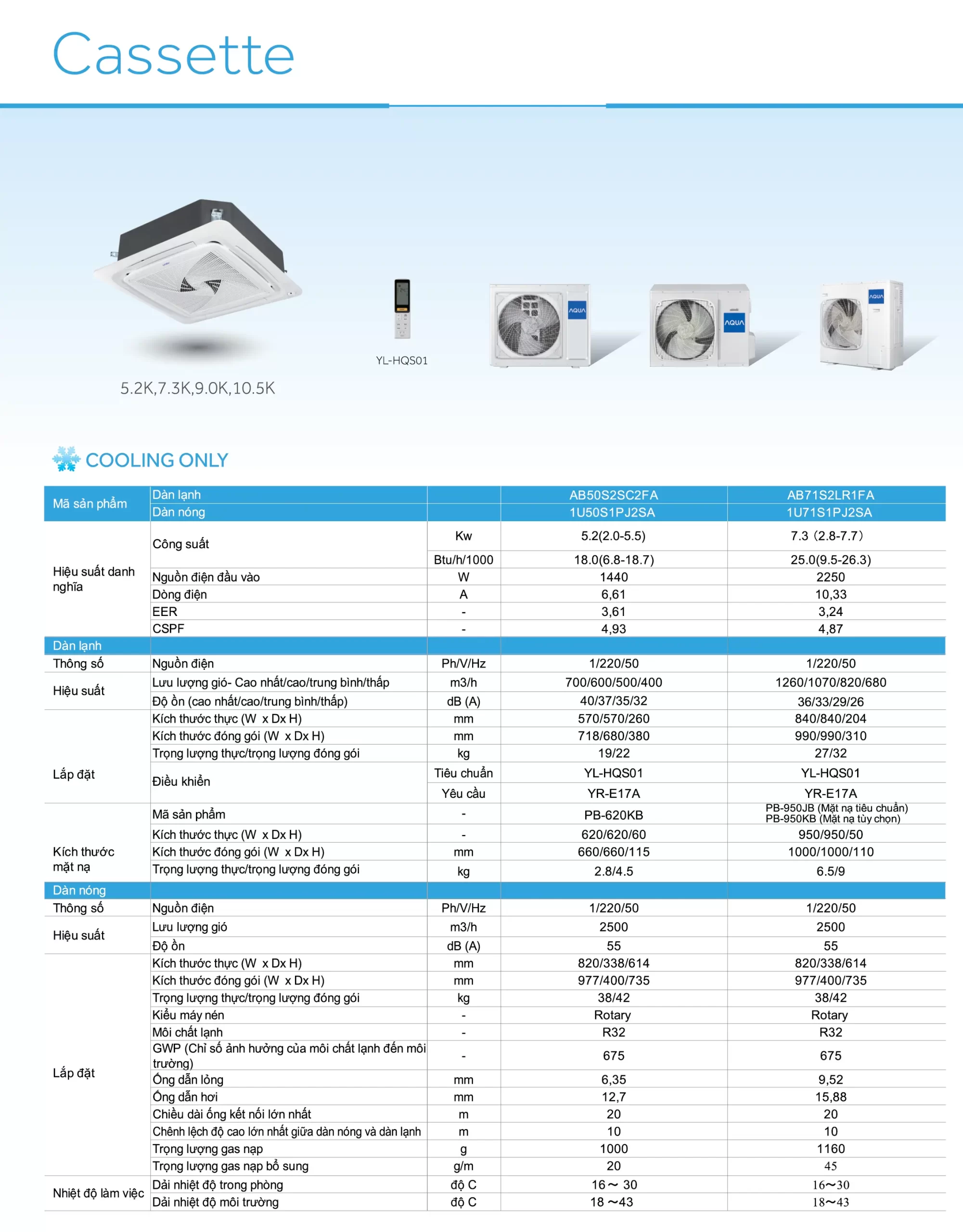 Máy lạnh âm trần Aqua Inverter 1U50S1PJ2SA – AB50S2SC2FA – PB-620KB