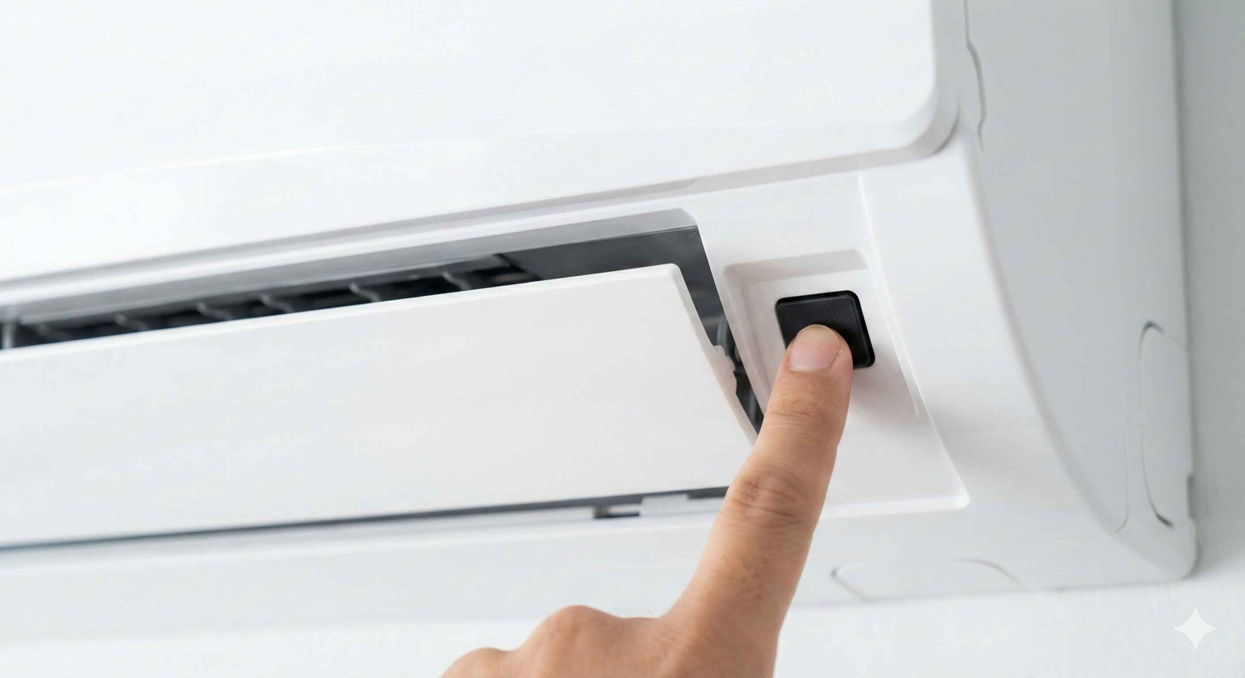 • Vị trí: Hầu hết các dòng máy lạnh (Daikin, Panasonic, Toshiba, LG…) đều có một nút nguồn nhỏ (thường ghi là On/Off hoặc Auto) nằm ẩn dưới tấm mặt nạ nhựa của dàn lạnh.