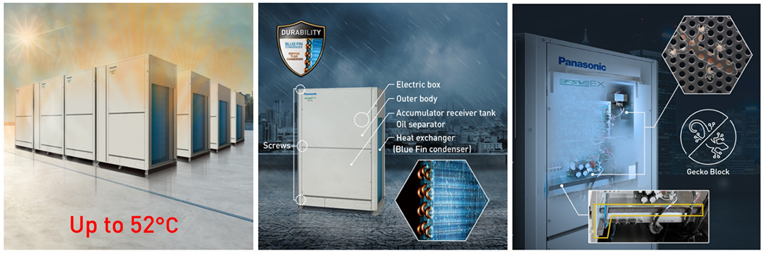 Dàn nóng FSV-EX được thiết kế đặc biệt để chịu được nhiệt độ ngoài trời lên đến 52°C. Sự bền bỉ này cực kỳ phù hợp với khí hậu nóng ẩm, giúp hệ thống hoạt động ổn định suốt nhiều năm.