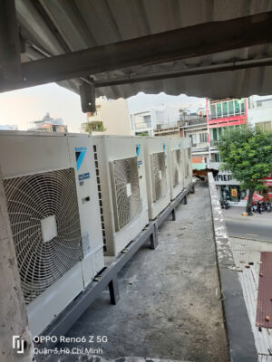 - Đặt Máy lạnh trên bệ đỡ chắc chắn và kết nối ống dẫn ga cùng dây điện.